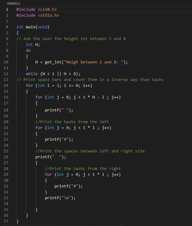 Este proyecto fue realizado en C. Consiste en un programa que permite diujar las escaleras de mario con simbolos numerales.